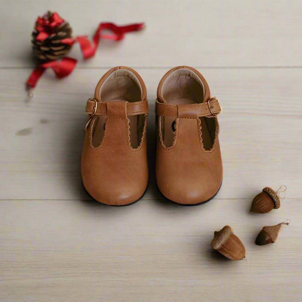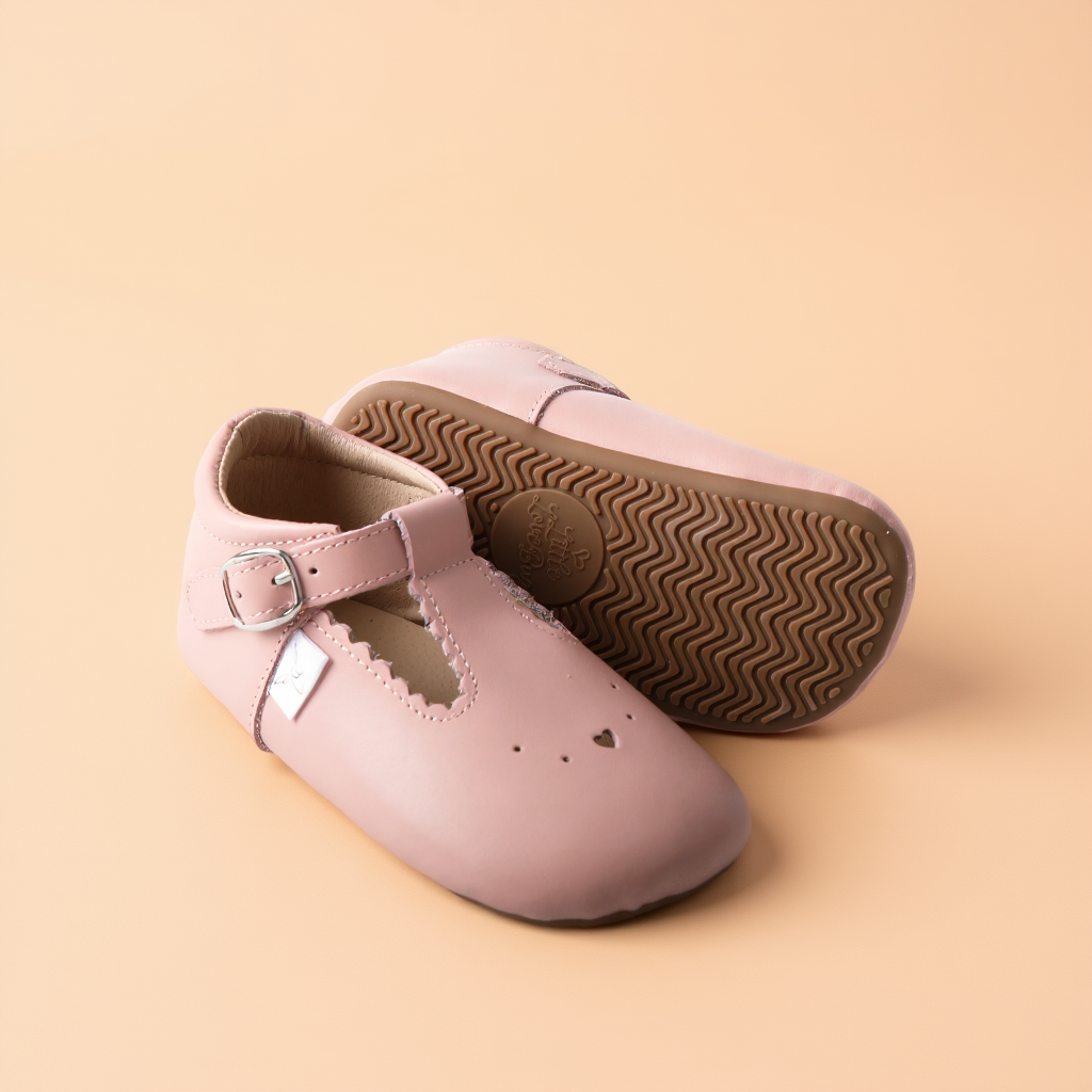 Little Love Bug Company's T Bars blend style and support for your child’s developing feet. These Montessori-approved scalloped shoes feature an elastic entrance and adjustable buckle for easy on and off.